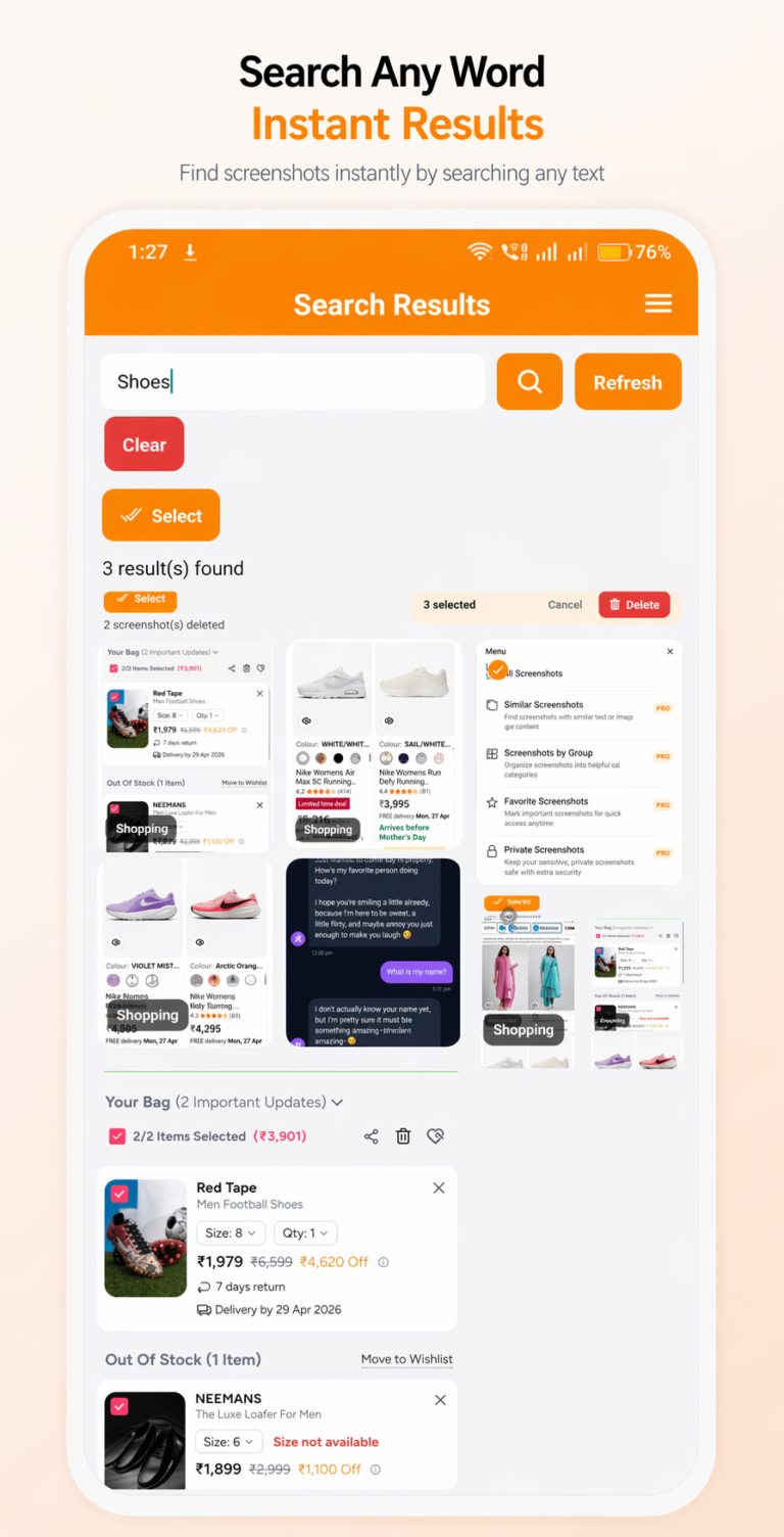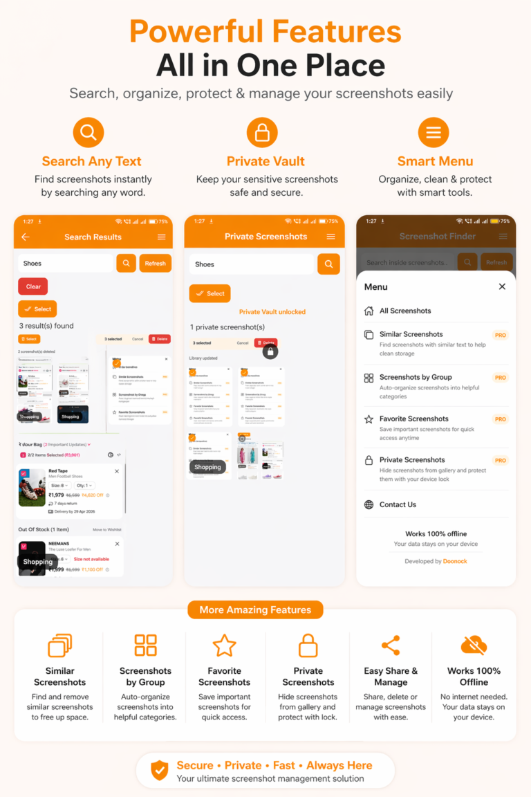 No more endless scrolling. Search text inside your screenshots and photos in seconds.